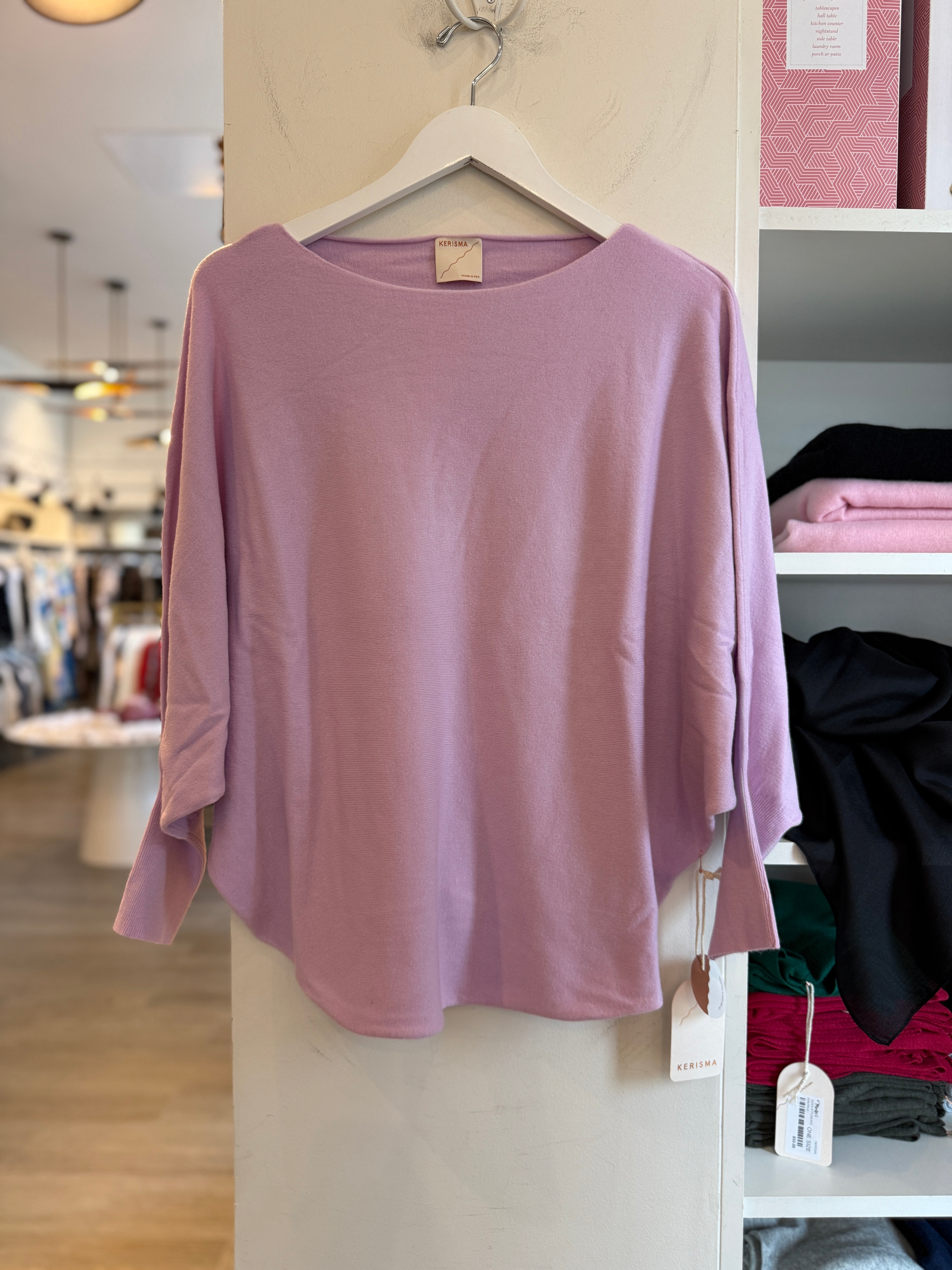 • TURTLENECK 3/4 SLEEVE TUNIC IN GARTER STITCH WITH SIDE SLITS AND CONTRASTING RIB ACCENTS.