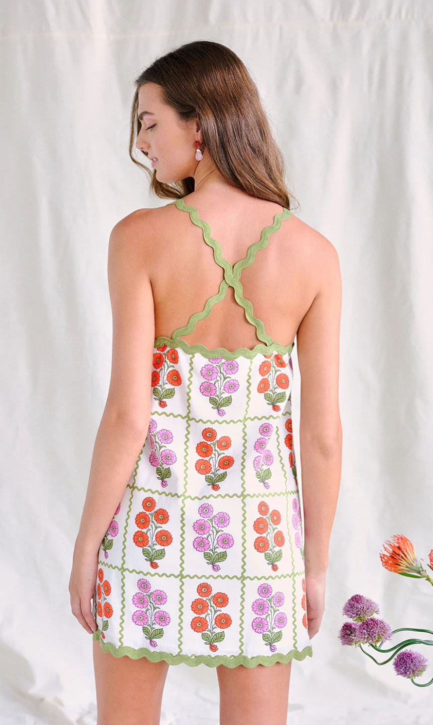 • The Shayla Dress combines a timeless apron-style silhouette with a beautiful floral motif.