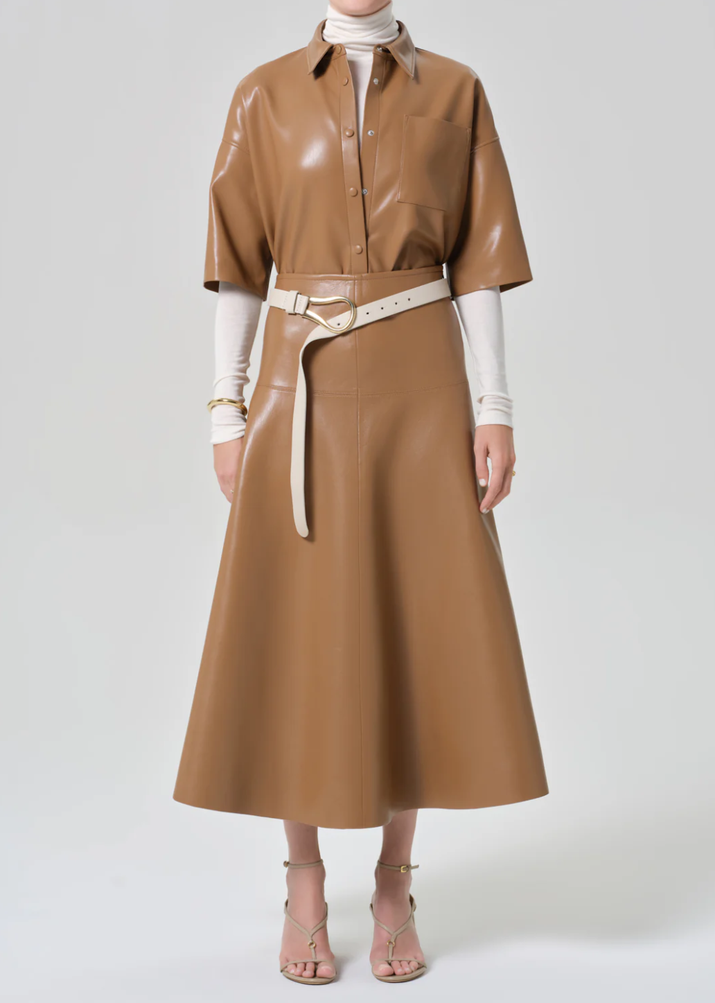 - Looks Like: Light brown recycled leather maxi skirt
