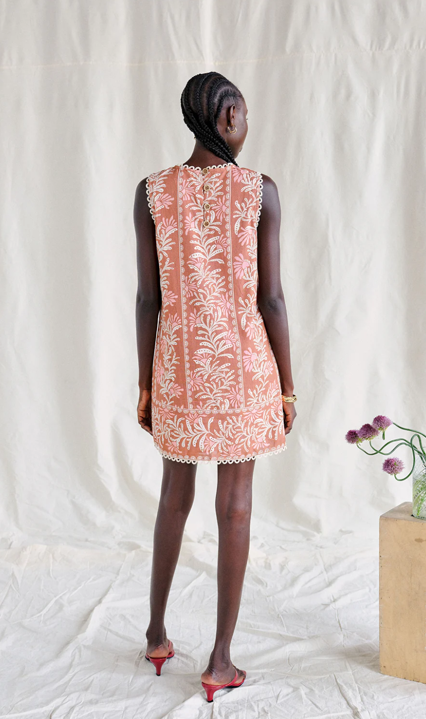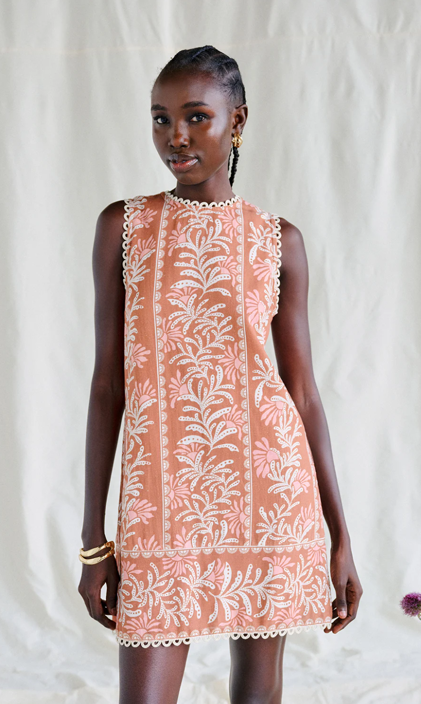 • Featuring a cheerful coral stripe pattern, the a-line silhouette gives a flattering fit to the effortless mini.