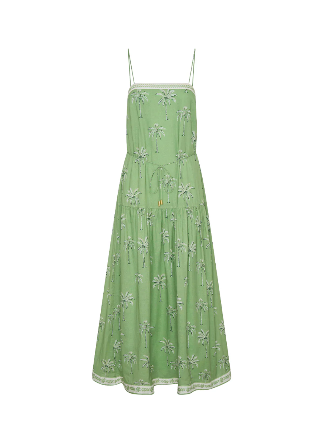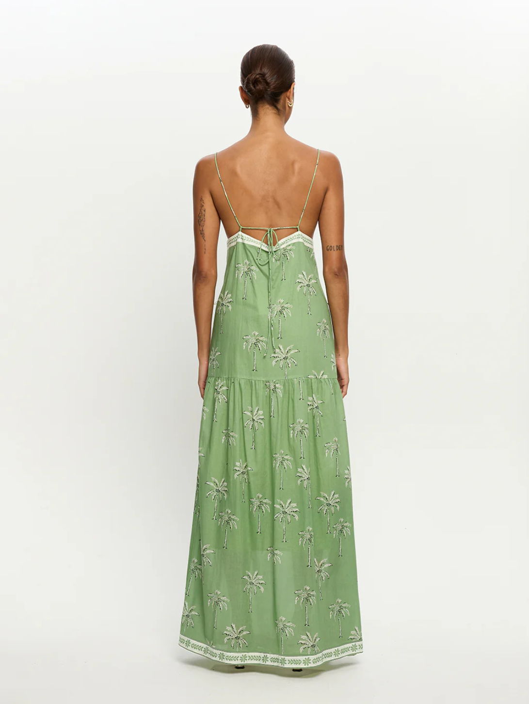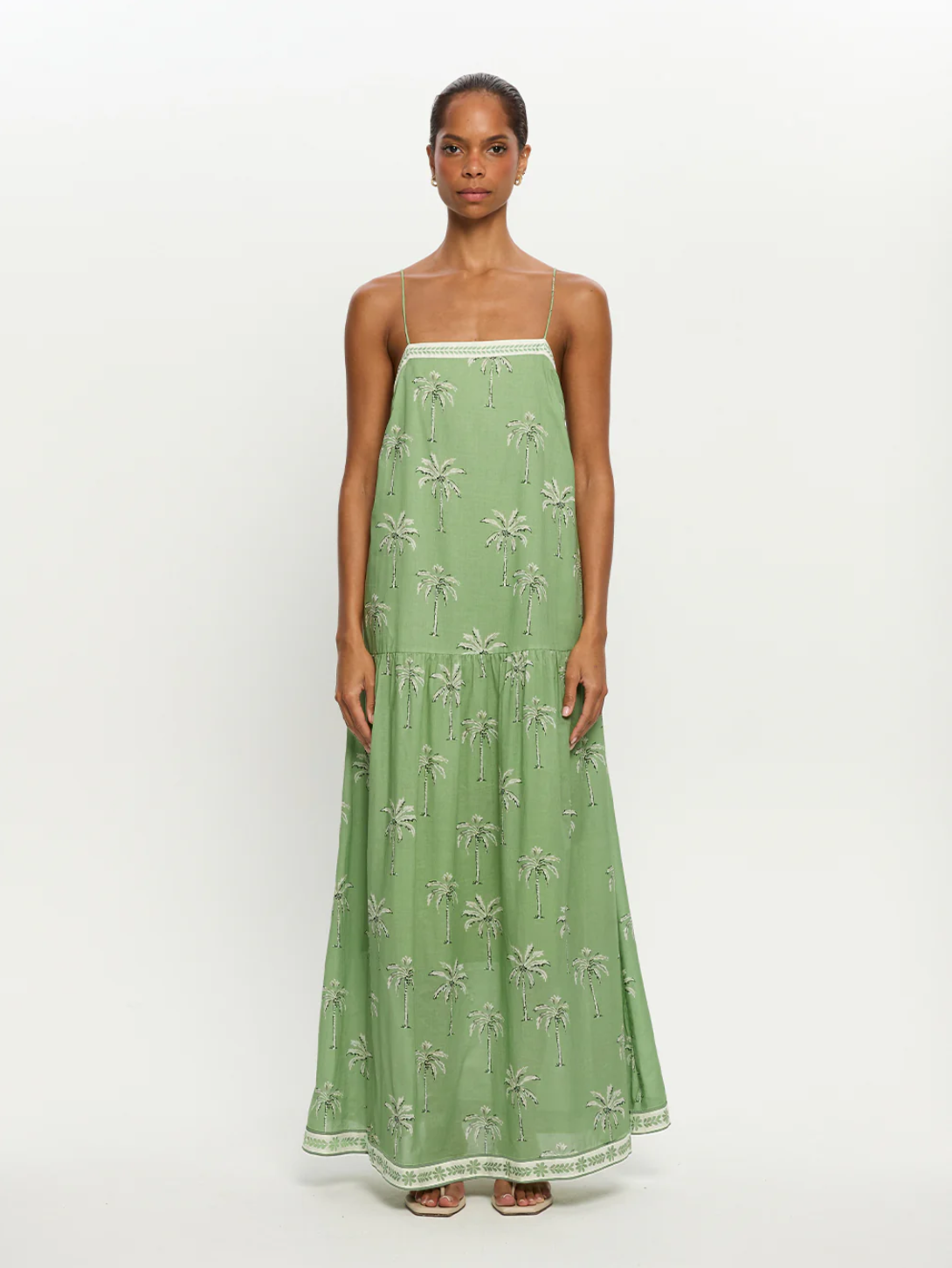 • The Kaelia Strappy Maxi Dress is a relaxed silhouette featuring a straight neckline and fine shoulder straps, finished with a contrast border at the neckline and hem.