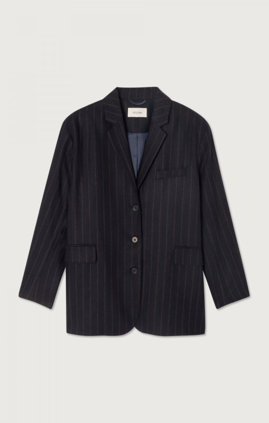 • Mid-length loose-fitting long-sleeved buttoned blazer