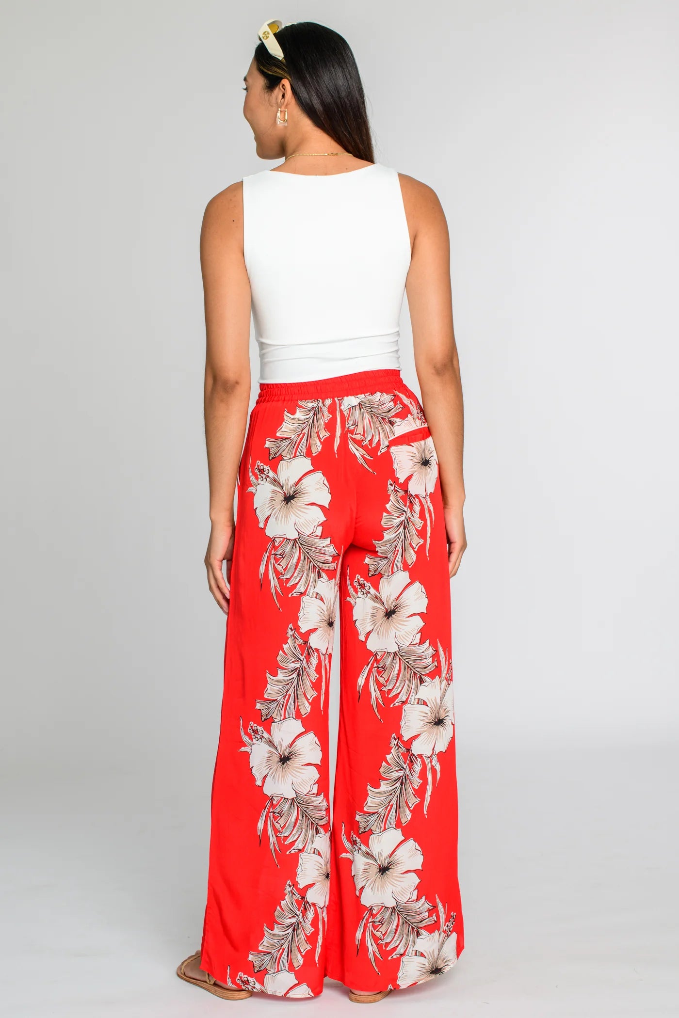Refresh your Spring wardrobe with our chic Presley pants & be prepared for compliments! This fun Tropicalia print pops on a vibrant red background, and the shirred elastic waistband makes these pants lounge worthy.