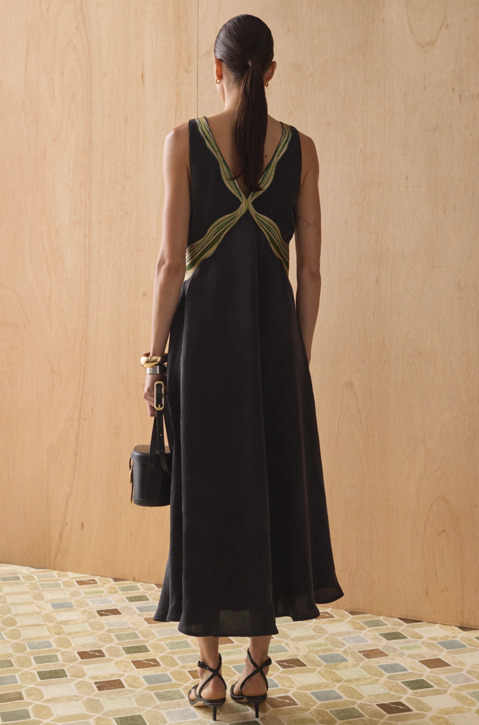 • The Rhapsody Dress is a perfectly flattering maxi shape, with an elegant v-neckline and full hem.