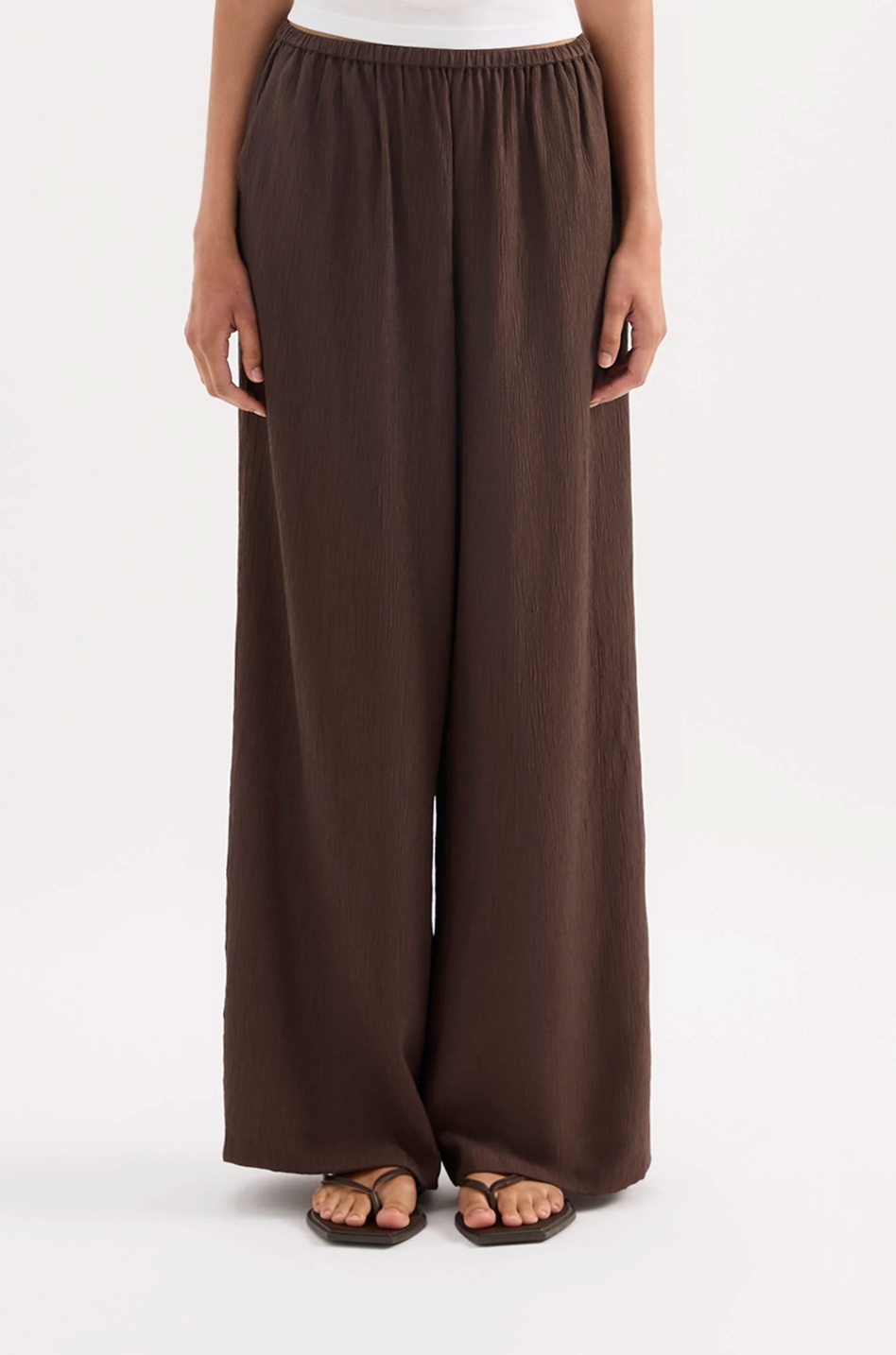 The Winfield Pant is made from a crinkle textured fabric which has a dry, lightweight hand feel. The silhouette is relaxed with a wide full length leg. Features include an elasticated waistband and side seam pockets.